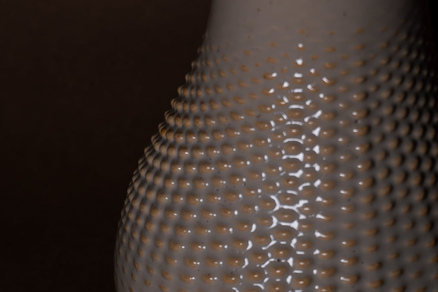 Five points are randomly chosen on the vase's surface, acting as centers of influence for the texture. The bump pattern grows larger and more pronounced as it nears these points, creating a dynamic, tactile effect. This process ensures that every vase is entirely unique, with its own distinct texture shaped by the placement and influence of the attractors.